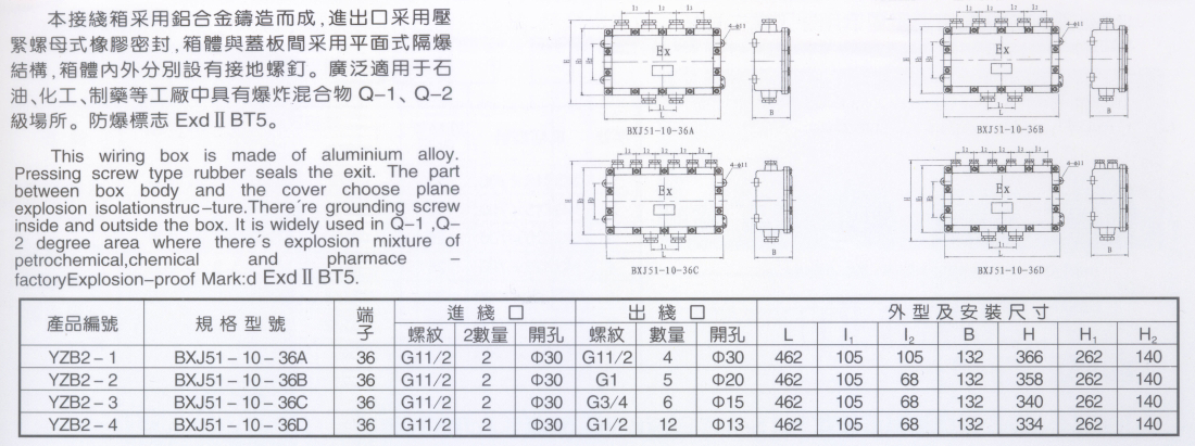 MFX系列防濺式接線箱,箱體采用鋁合金精制而成,可作為多芯電纜終端接線和電線的分線接線等,適用于500V以下的低壓電器回路中,為A型和B型兩種,A型進出口為密封填料盒,B型進出口為內螺紋接頭。